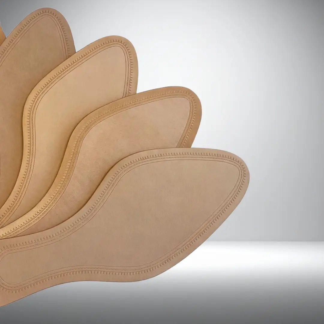 One of the primary advantages of performa sheets is that they are available in both flexible ( Hardness: 80 +-3 Shore A) and normal (Hardness: 90 +-3 Shore A) qualities. They provide effective shock absorption, vibration damping, and are extremely light in weight compared to rubber sole sheets. They are available in snuff/ nubuck finish only.